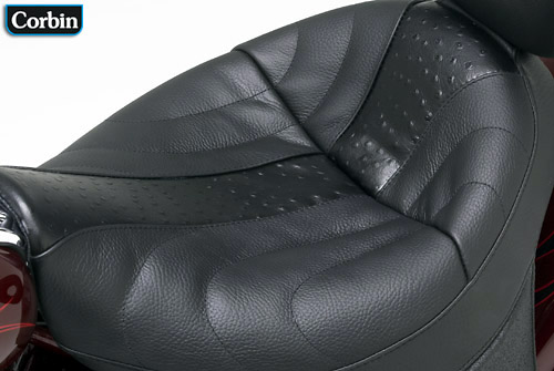 In der Mitte der Sitzbank befindet sich ein farblich abgesetzter Leder-Längsstreifen. Sie können im Design dabei wählen zwischen "Grey Snake", "Plain Black" und "Black Ostrich". |